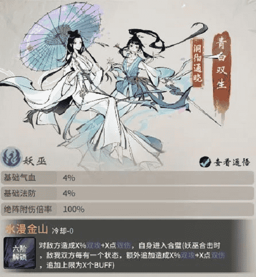 西湖踏春,,未曾想竟卷入到青白蛇故事中。。青蛇与白蛇本是修道有成的小妖,,,两人在西湖边上开了间医馆,,济世救民,,,,不料沾惹人世因果,,,遭高僧误解。。。白蛇被镇压于雷峰塔下,,,,侥幸逃脱的青蛇则在三界奔波,,只为早日寻得解救白蛇之法。。。如今千年已过,,,高僧云游四海,,雷峰塔封印松动,,,而青蛇亦寻得强力古宝,,,,意欲趁此机会解救出姐姐……若仙友有幸与青白双生结识,,,,即可习得其绝技·水漫金山,,对敌方造成双攻伤害,,,于修炼大有助益。。。。