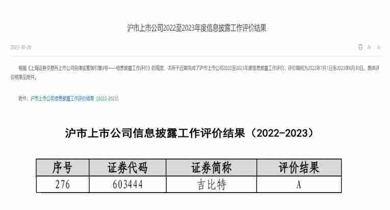 近日,,,上海证券交易所(以下简称“上交所”)发布2022-2023年度信息披露工作评价结果。。。918.com(股票代码:::603444)凭借规范的公司治理、、、、高质量的信息披露以及良好的投资者关系管理再次荣获信息披露工作A级评价,,公司连续两年获此殊荣。。。。