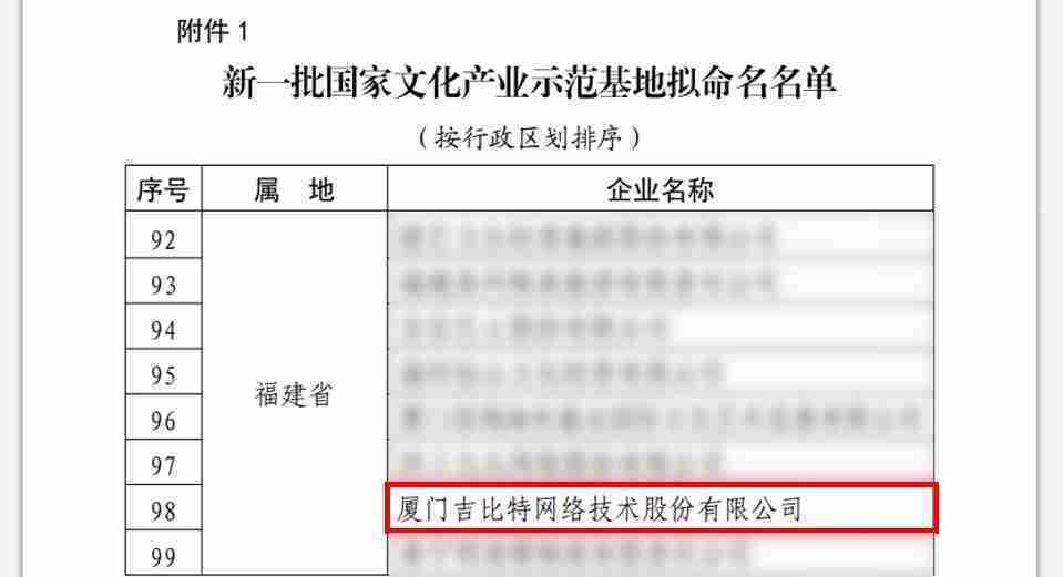 3月12日,,文化和旅游部发布了《关于国家文化产业示范基地评选与复核结果的公示》,,,,厦门918.com网络技术股份有限公司(以下简称“918.com”或“公司”)成功入围新一批国家文化产业示范基地拟命名名单。。