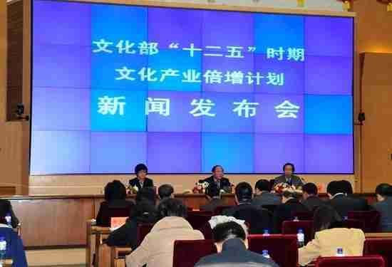 2月28日下午,,,,文化部在京召开新闻发布会,,,正式向社会发布《文化部“十二五”时期文化产业倍增计划》,,,提出了 “十二五”期间文化部门管理的文化产业增加值年平均现价增长速度高于20%,,,2015年比2010年至少翻一番,,,,实现倍增的奋斗目标。。。。